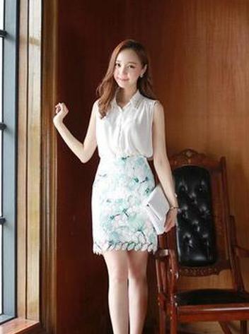 无袖款的白衬衫清新凉爽,加入一点小碎花点缀,显得格外素雅,看起来更加精致,搭配深蓝色牛仔包臀裙,勾勒曼妙曲线,穿出简约时尚。